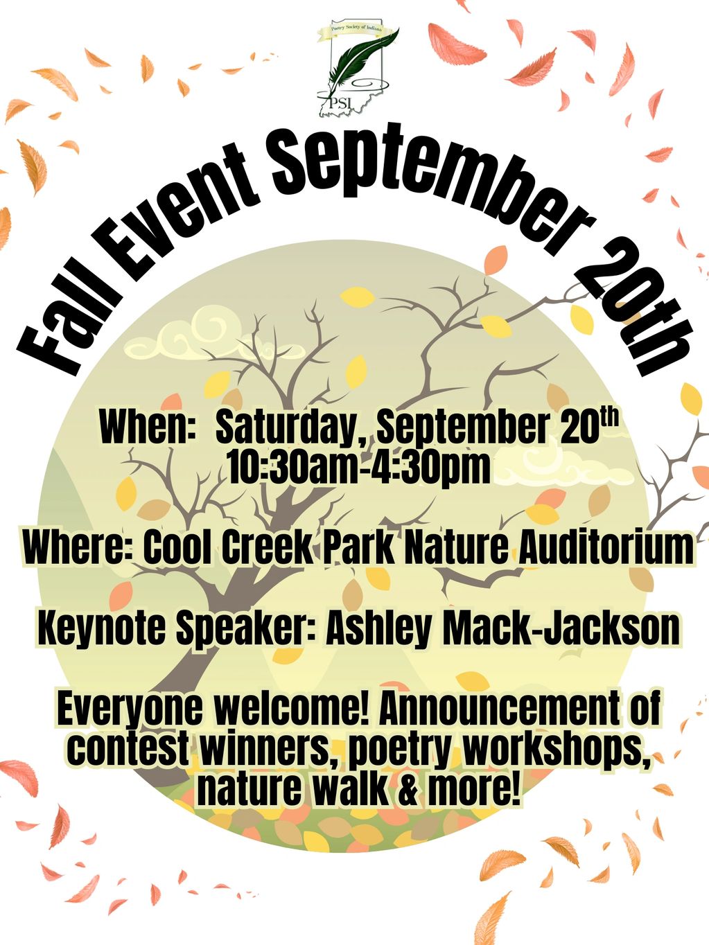 Come join Morgana and other poetry enthusiasts at the Cool Creek Park in Carmel, IN on September 20th for the Poetry Society of Indiana's fall event!